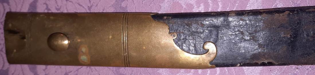 The scabbard as noted earlier looks more French than English, but the drag should be in steel not copper like this and mine, a sure sign that it’s a new replacement.