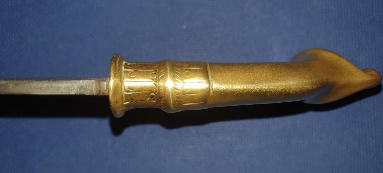 I don't recall any other examples of swords from the area with brass hilts . . . if others here have links to such swords, I'd be delighted to see and learn more about the subject. |