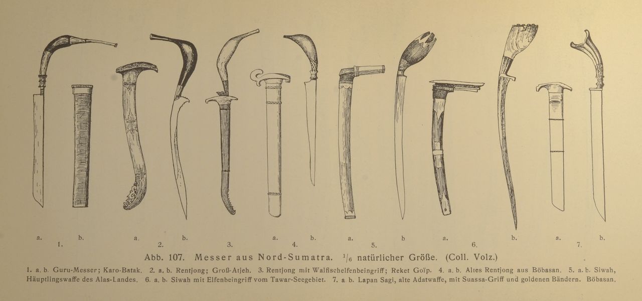 thank your for the extra info, i will have a look for these places, I just ordered the 1912 edition from: Volz, Wilhelm: Nord-Sumatra. Band II: Die Gajoländer. And it is on it's way from Berlin. Will take some pictures later today when i am home. The Rencong fits like a hand in a glove and it is the scabard that belongs to it. When my aquintance is back from Indonesia, i will ask him where he got the Rencong from so maybe i find out more. Regards, Martin |