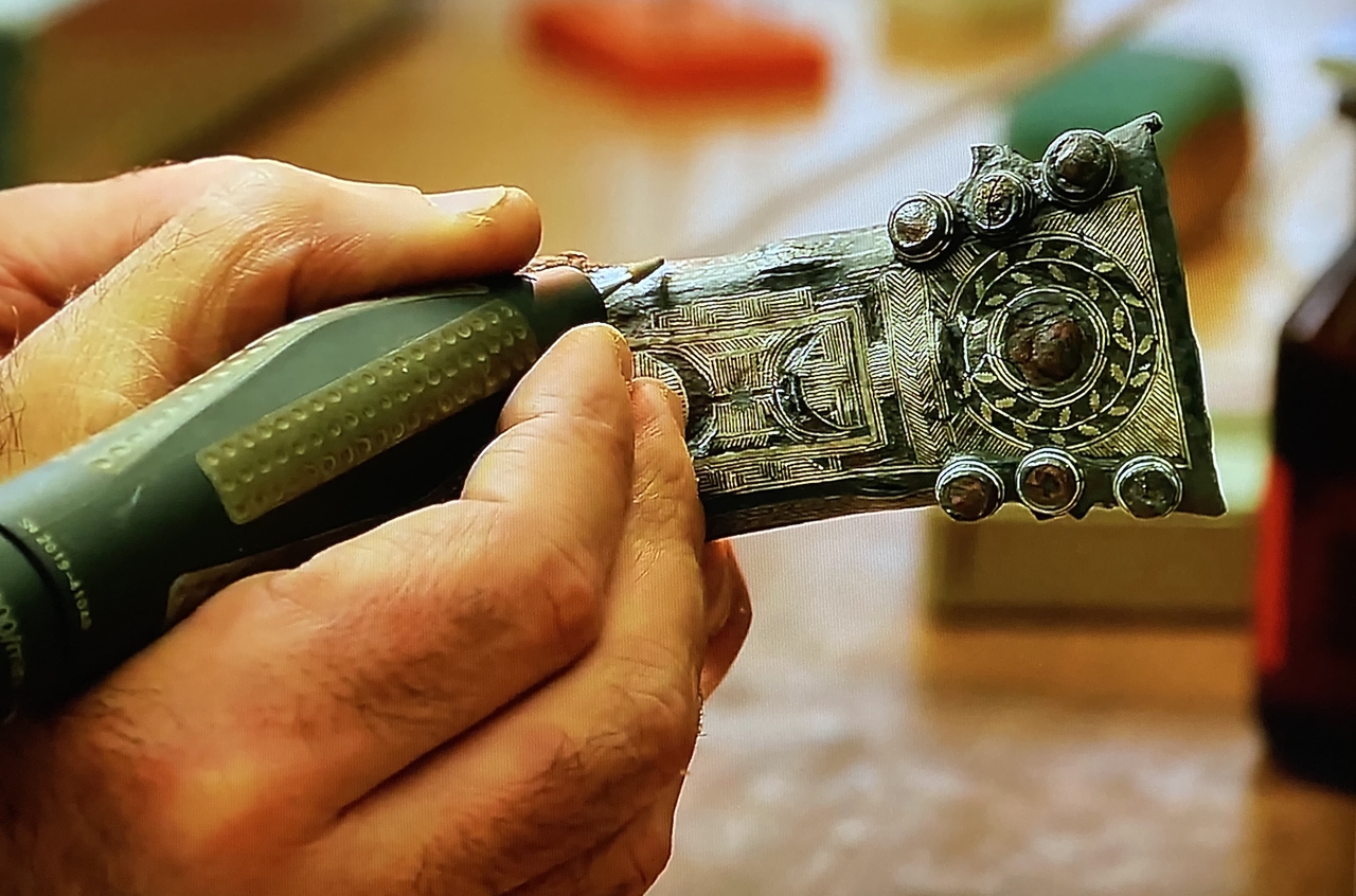 A Roman dagger, probably from the first century A.D.. I made some screenshots from the video for the forum.