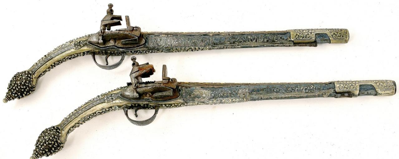 These pistols from Albania or Greece have fantastic silver stocks. Is there anyone here who can explain to me how these silver shafts with the many dimples were made?